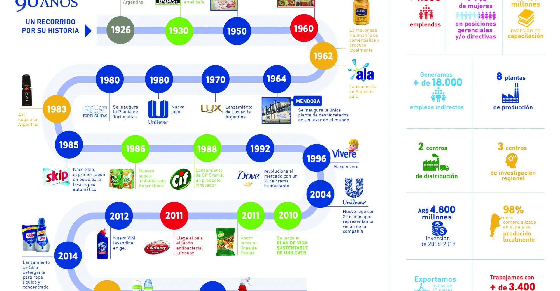 Han pasado 90 años, y a lo largo de todo este tiempo Unilever continúa brindando los mejores productos de la mano de reconocidas marcas, pensando siempre en innovar y en responder a las necesidades de un consumidor cada día más exigente.